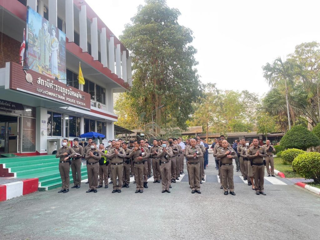 ผกก.สภ.นิคมพัฒนา ร่วมเคารพธงชาติและอบรมคุณธรรมจริยธรรมปล่อยแถวออกปฏิบัติหน้าที่