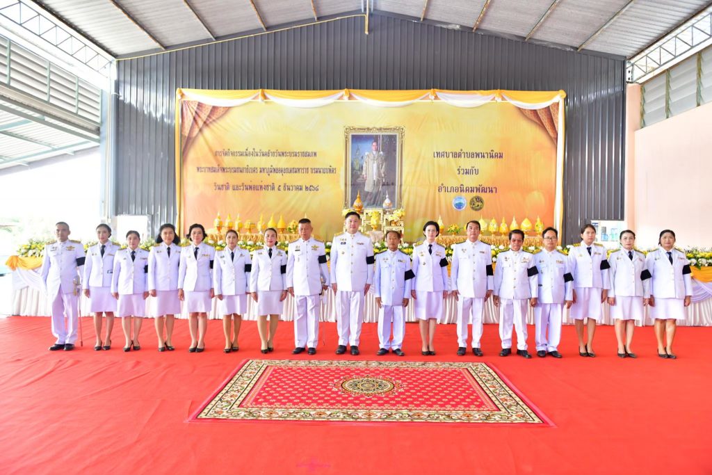 พิธีเจริญพระพุทธมนต์และทำบุญตักบาตรถวายพระราชกุศล พิธีวางพานพุ่มดอกไม้ถวายราชสักการะ เนื่องในวันคล้ายวันพระบรมราชสมภพพระบาทสมเด็จพระบรมชนกาธิเบศร มหาภูมิพลอดุลยเดชมหาราช บรมนาถบพิตร วันชาติ และวันพ่อแห่งชาติ 5 ธันวาคม 2568