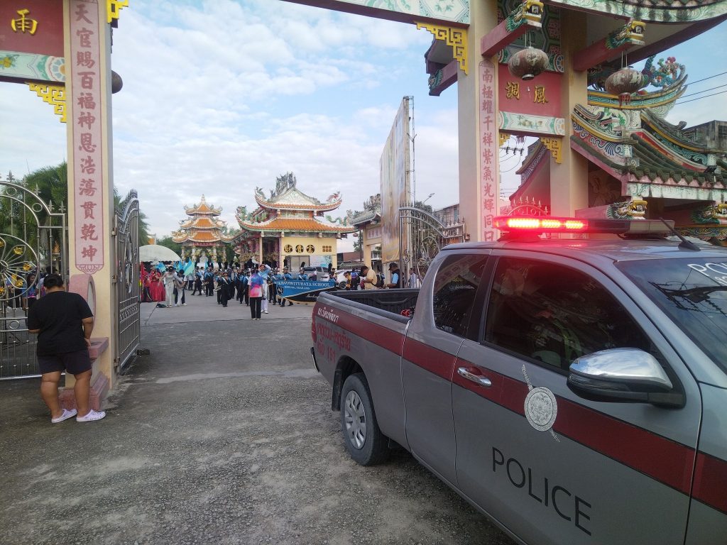 เจ้าหน้าที่ตำรวจจราจรจัดการจราจร ขบวนพาเหรดพิธีเปิดกีฬาโรงเรียนนิคมวิทยา