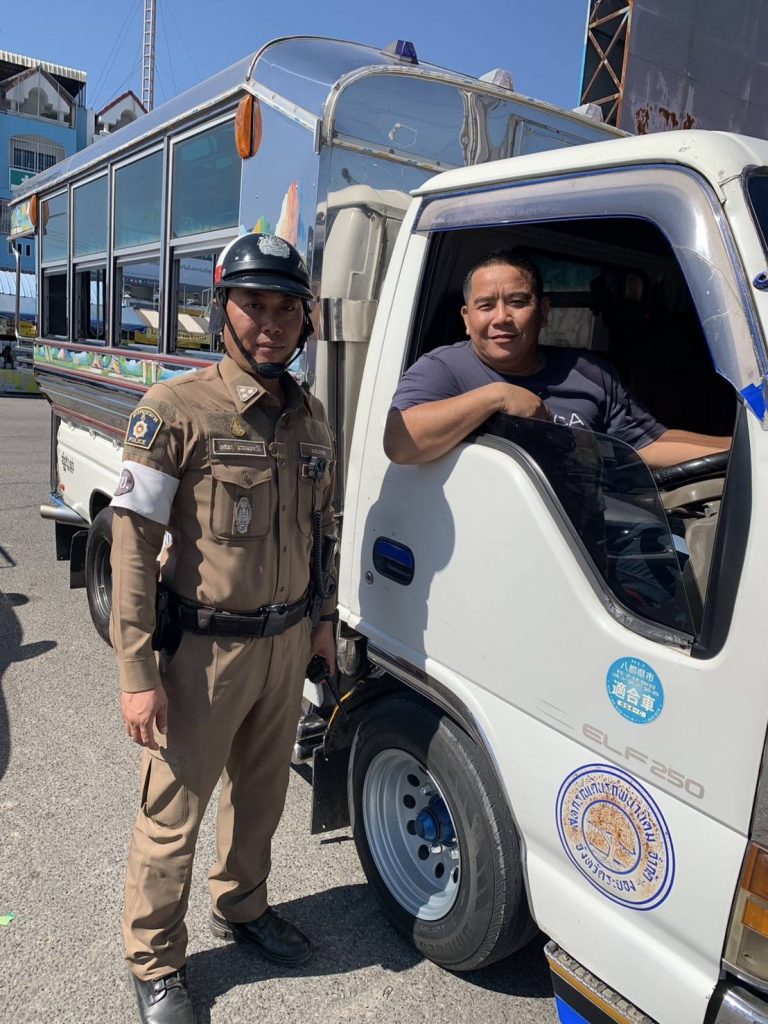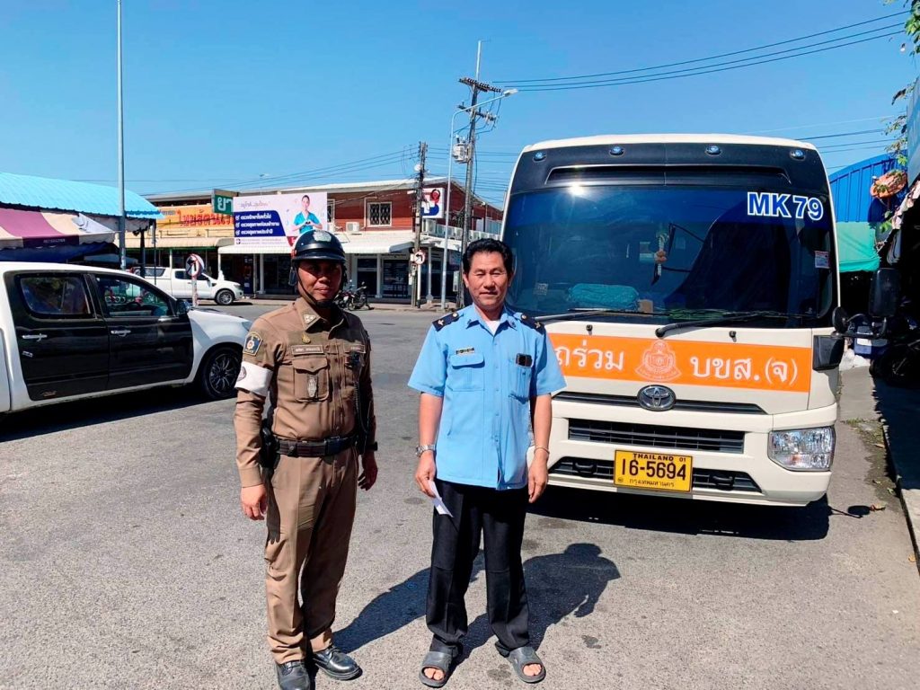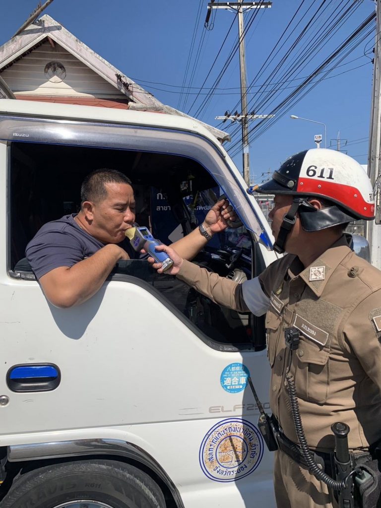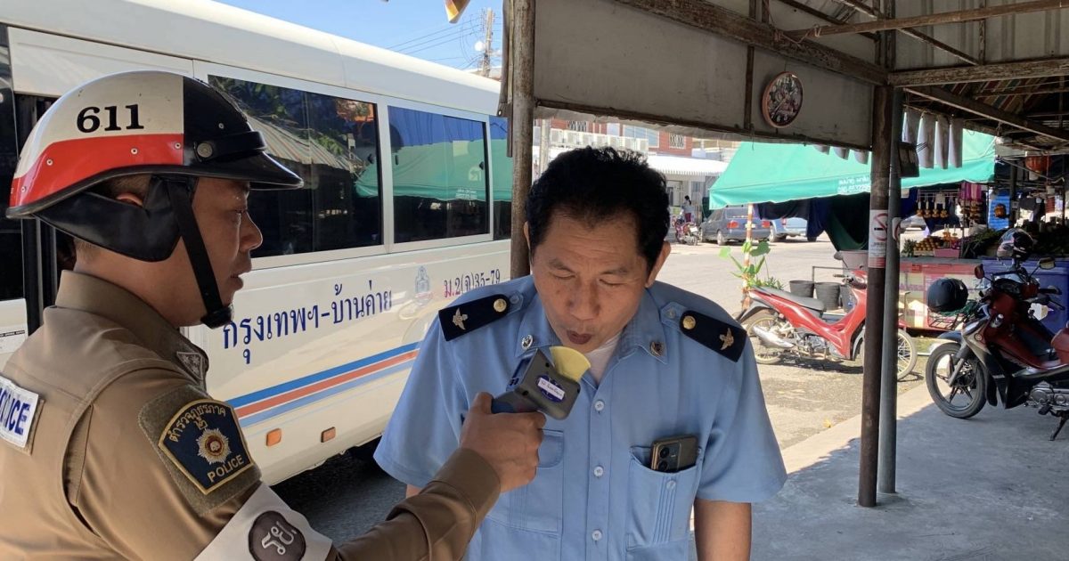 เจ้าหน้าที่ตำรวจจราจรตรวจสอบปริมาณแอลกอฮอล์ผู้ขับขี่รถโดยสารสาธารณะ