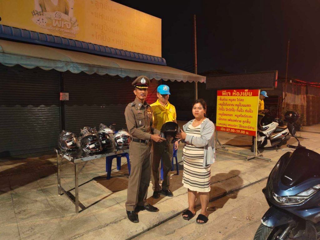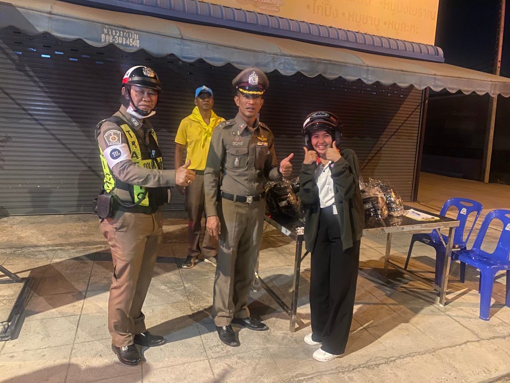 วันที่ 2 มกราคม 2568 พ.ต.อ.ราเมศ ชนะศุภกาญจน์ ผกก.ฝอ.ภ.จว.จันทบุรี รรท.ผกก.สภ.นิคมพัฒนา พ.ต.ต.วิทัศน์ รวยพงษ์ สวป.(ชส.)ฯ พร้อมด้วย จิตอาสาจราจร สภ.นิคมพัฒนา ได้ประชาสัมพันธ์ นำความรู้เรื่องกฎจราจร การใช้รถใช้ถนนที่ถูกต้อง อธิบายลักษณะหมวกนิรภัยที่ได้มาตรฐาน ประกอบกับได้สาธิตการสวมใส่หมวกนิรภัยอย่างถูกวิธี พร้อมทั้งเป็นจิตอาสาเชิญชวนรณรงค์เป็นแบบอย่างในการสวมหมวกนิรภัยขณะขับขี่จักรยานยนต์ต่อไป