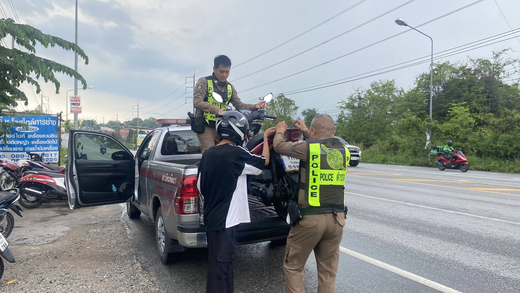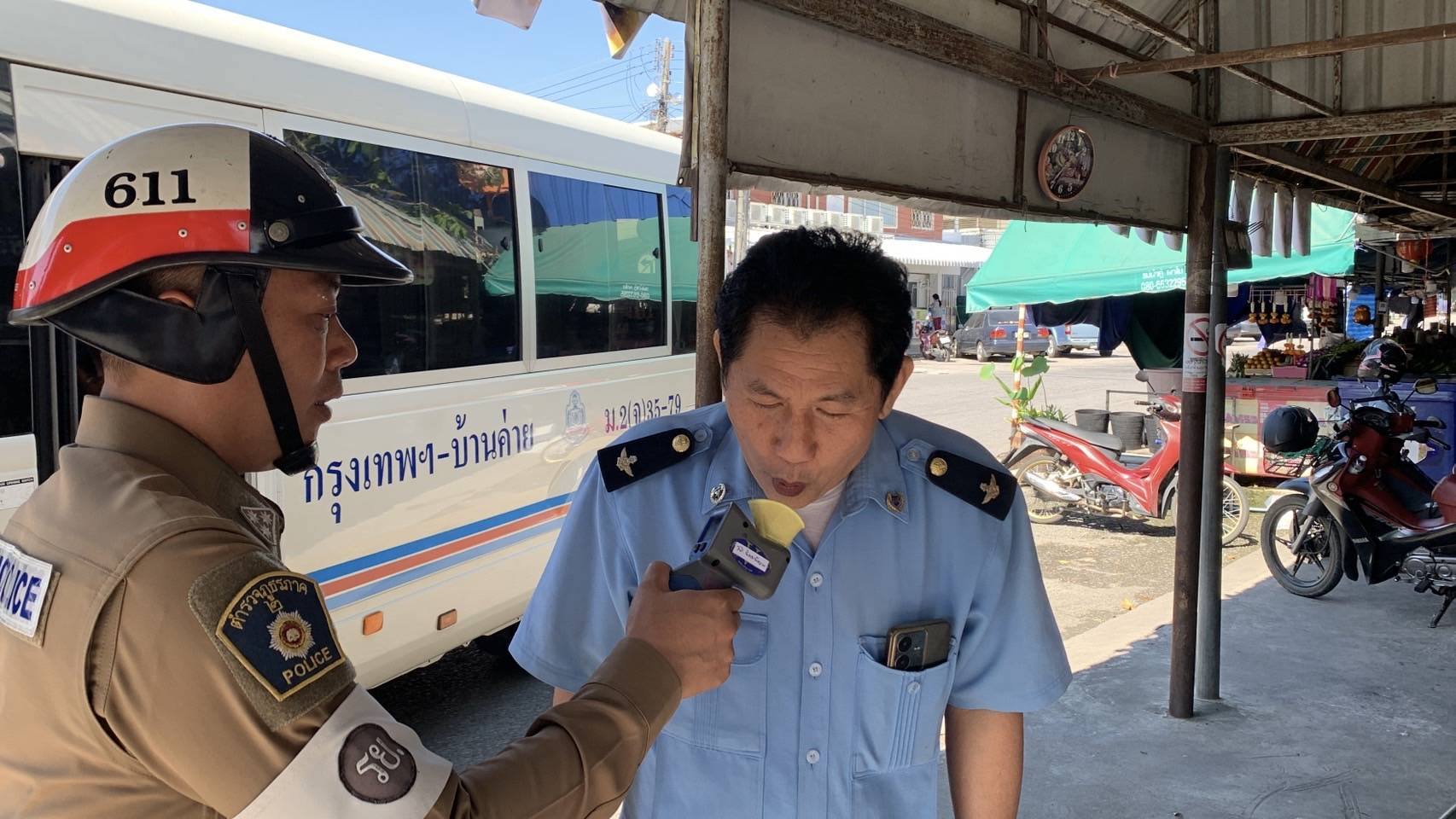 เจ้าหน้าที่ตำรวจจราจร ตั้งด่านจับกุมเมาแล้วขับ เทศกาลสงกรานต์ 2568
