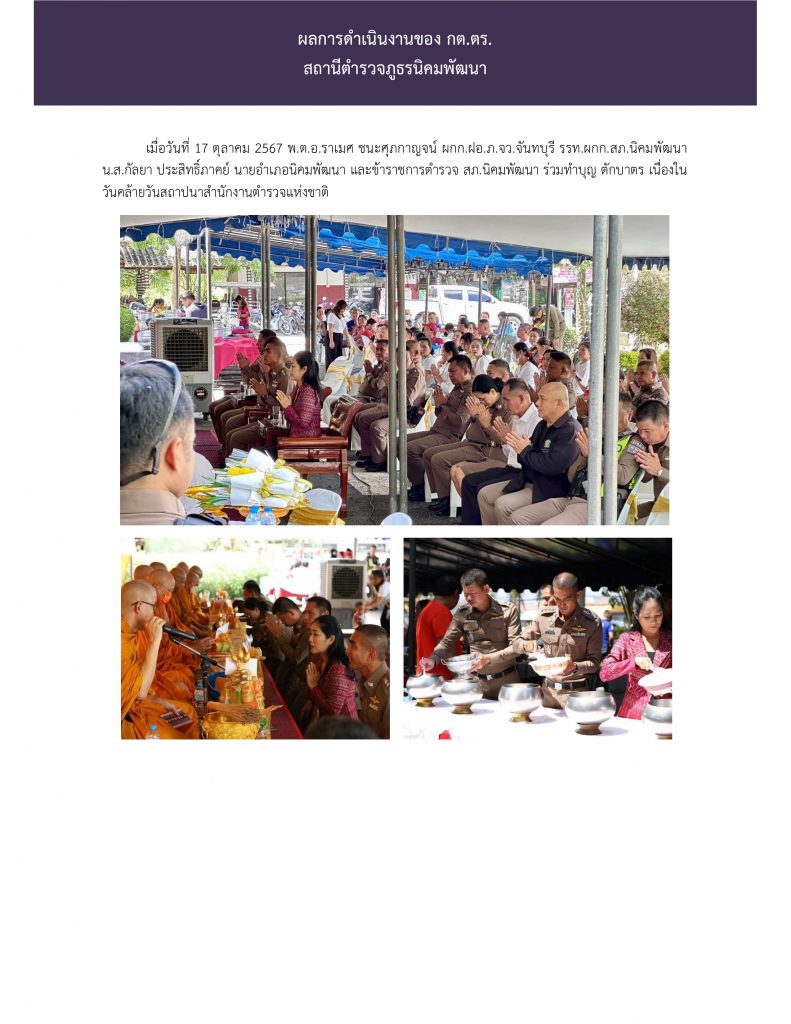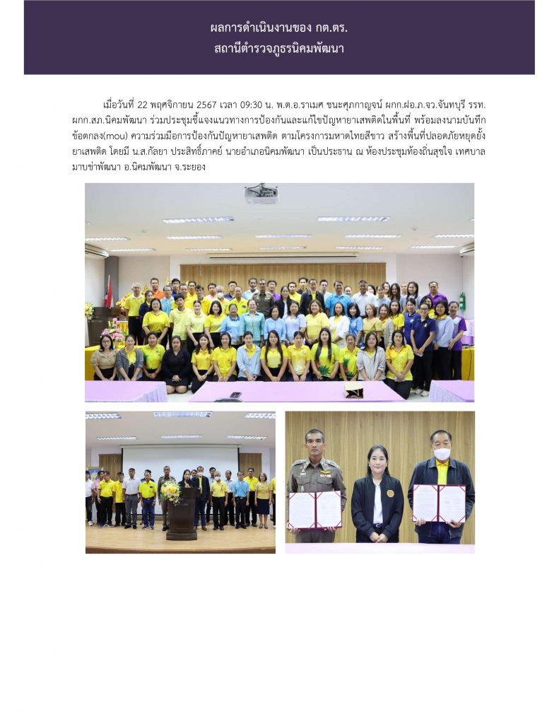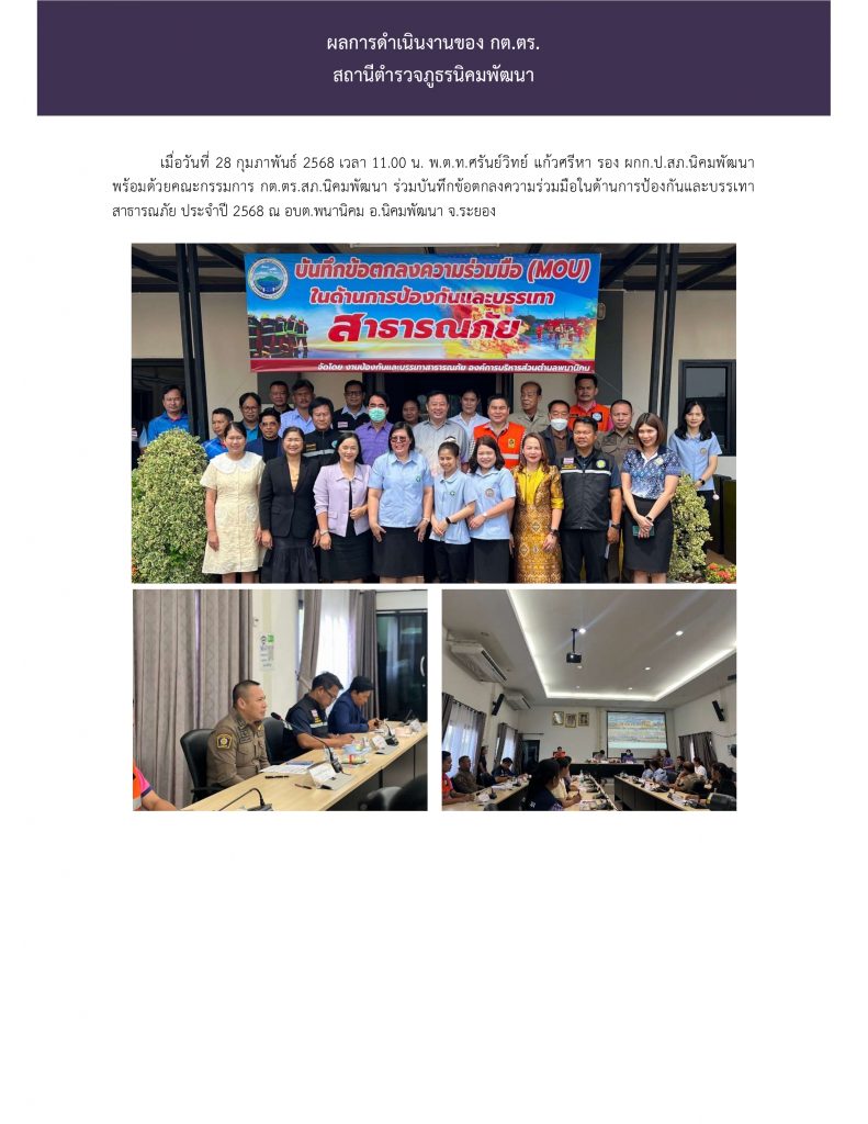 ผลการดำเนินงานของ กต.ตร. สถานีตำรวจภูธรนิคมพัฒนา