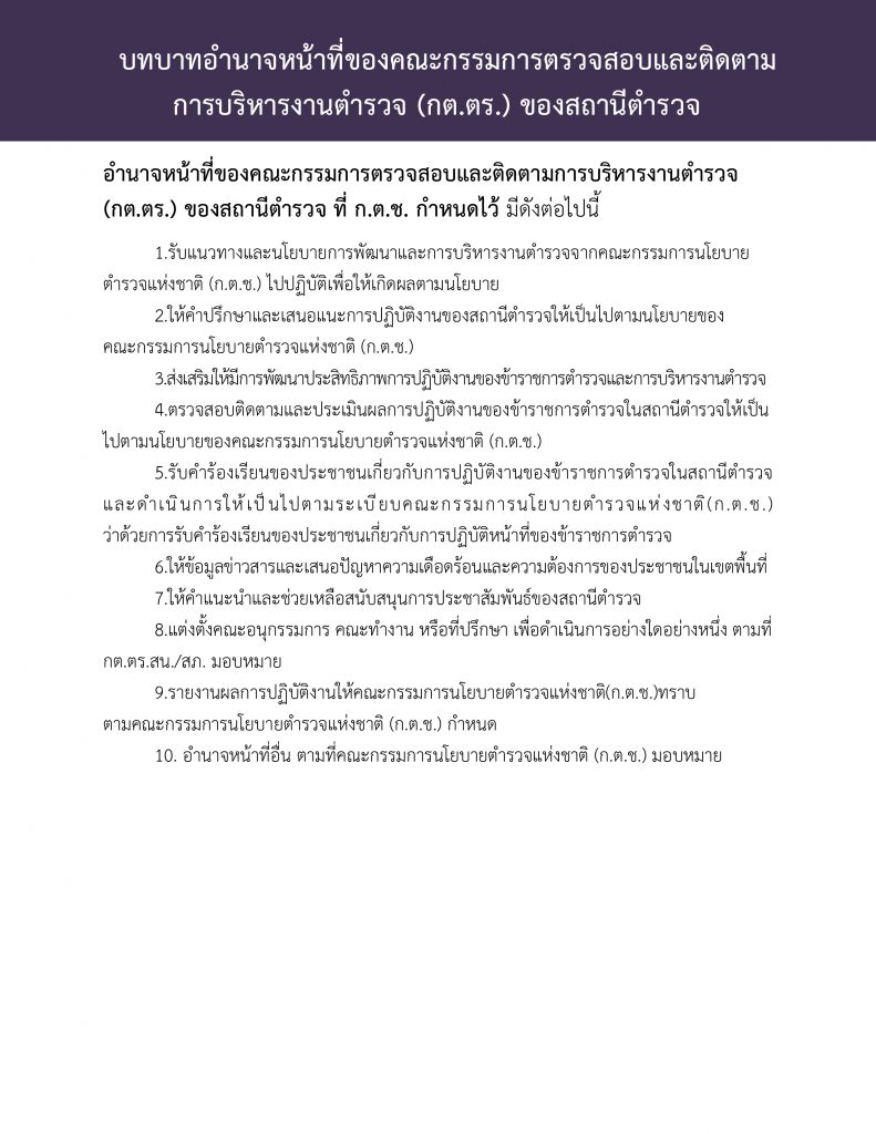 บทบาทอำนาจหน้าที่ของคณะกรรมการตรวจสอบและติดตาม การบริหารงานตำรวจ (กต.ตร.) ของสถานีตำรวจ